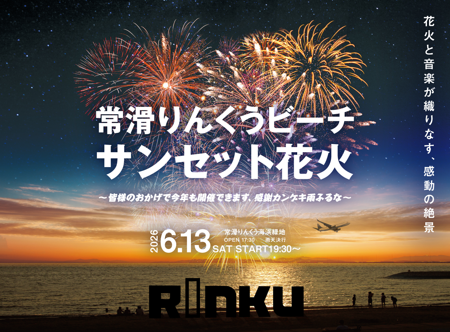 - 暖かい海風を感じながら、胸に響く音楽とともに、りんくうビーチの夜空に咲乱れる色鮮やかな花火を楽しむ至福の時間。